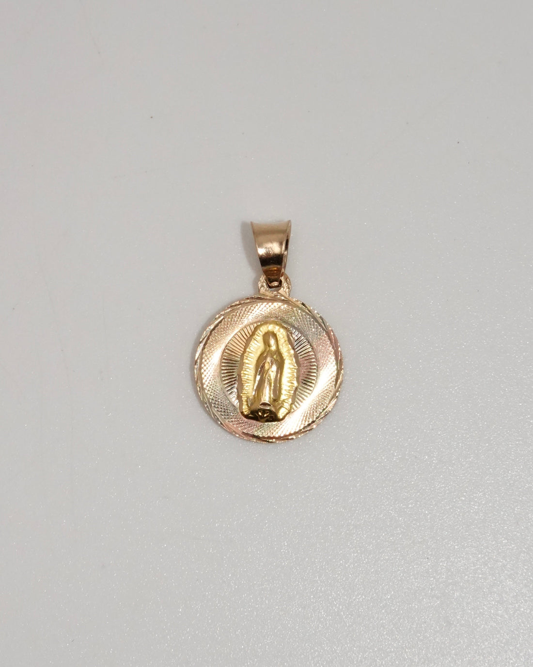 Vergen de la Guadalupe Y Sagrado Corazon de Jesus Tres Oros crafted in 14k gold....