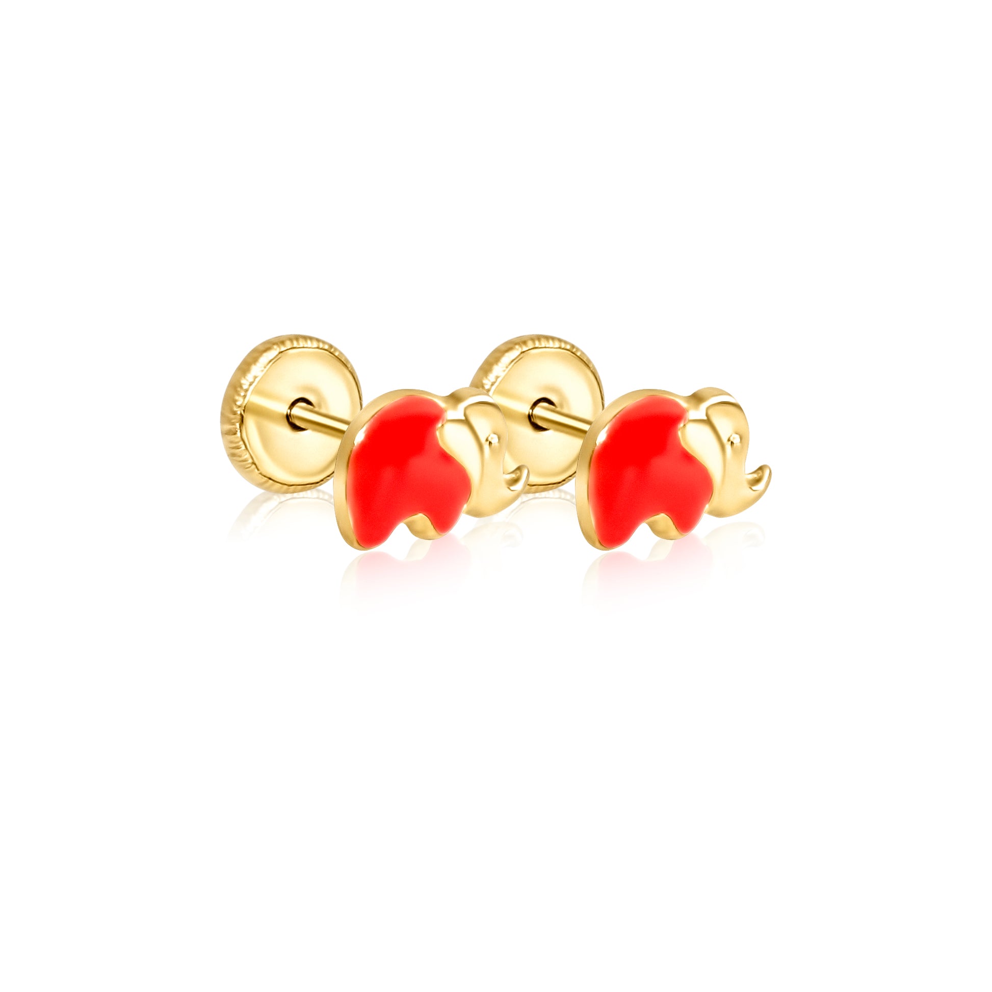 Elephant with Enamel crafted in 14k gold. Designed for little ears with secure screwbacksavailable in Korean and Spanish styles. A perfect gift for birthdays, baby showers, and special milestones.