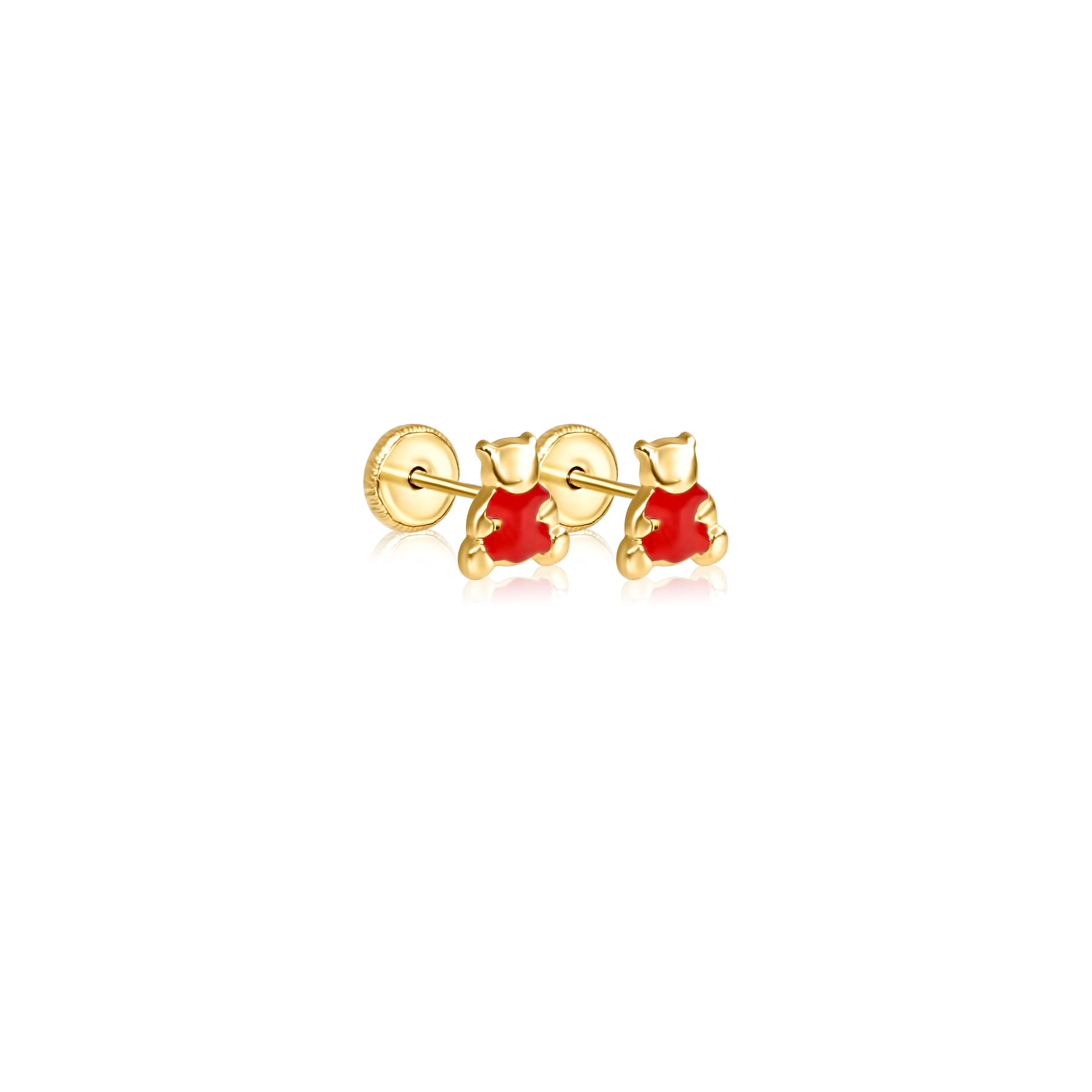 Heart Enamel crafted in 14k gold. Designed for little ears with secure screwbacksavailable in Korean and Spanish styles. A perfect gift for birthdays, baby showers, and special milestones.