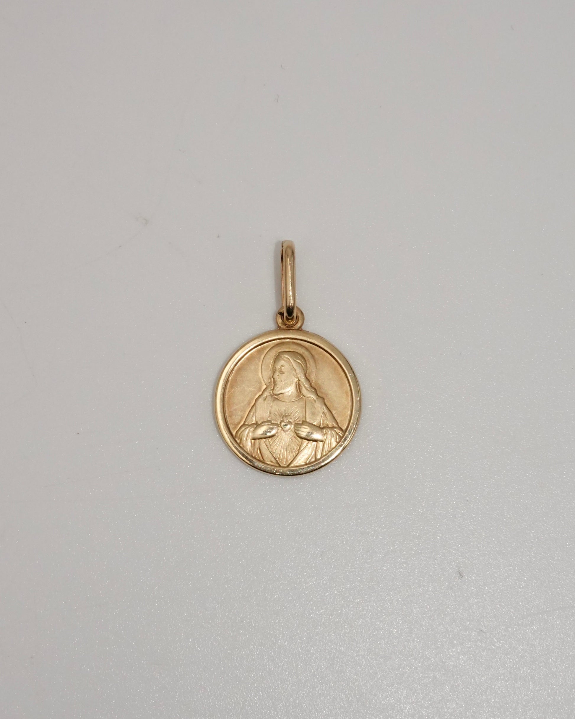 Virgen del Carmen Y Sagrado Corazon de Jesus crafted in 14k gold. A perfect gift for birthdays, baby showers, and special milestones.